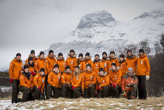 全体队员在Tromso合影留念,整齐一致的队服是不是很酷!明天,队员们即将启程开始330公里极地探险。