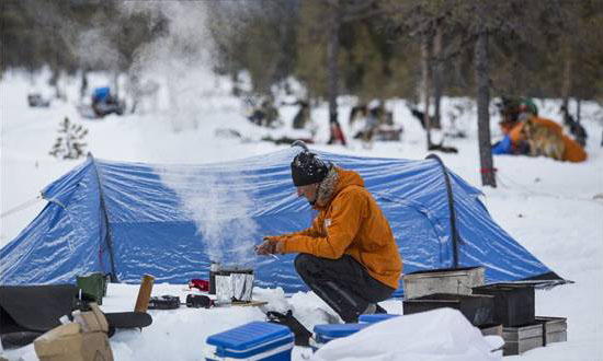 | Fjällräven Polar北极狐极地穿越纪实,4月10日,穿越队员接受雪地扎营及驾驶雪橇犬培训 |