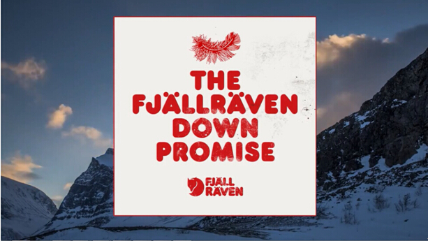 Fjällräven符合最高道德标准和人道原则的羽绒生产工艺,曾在2010年获得由瑞典志愿者组织“Animal Welfare Sweden”(瑞典动物福利)颁发的荣誉奖。